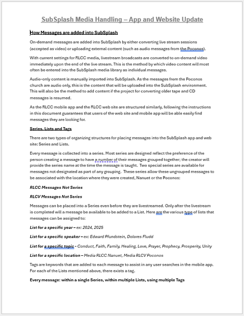 RLCC Media Handling - Messages, Series, Lists and Tags